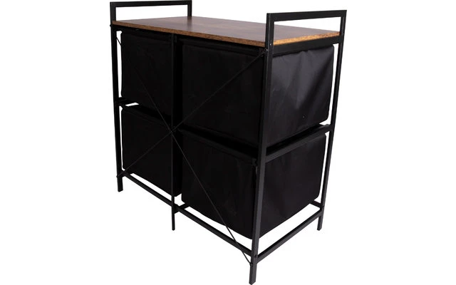 Der Schrank ist mit 4 Staufächern und Reißverschluss ausgestattet. Außerdem hat der Schrank einen stabilen Stahlrahmen und eine 2-farbige 600D Polyester Verkleidung. Ideal für den Garten, zu Hause oder im Zelt. Außerdem ist der Herdschrank komplett zerlegbar.