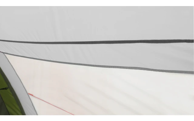 Im Innenzelt des Easy Camp Huntsville 600 mit zwei Türen und Trennvorhang finden 6 Personen Platz. Robuste, vorgeformte Fiberglasstangen sorgen im Wohnraum des Tunnelzelts mit drei Fenstern, Seitentür sowie abgedeckten Lüftungsöffnungen an Vorder- und Rückseite für Stehhöhe. Der aufrollbare Zeltboden im Wohnbereich kann zum Reinigen einfach entfernt werden.